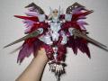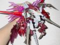 | オーガノイドと呼ばれるその新人類達は、嘗てこの惑星に墜ちた異星の民が原型―― その中核として今尚機能している巨大な移民船、それを護る最大最強のアドバンスドキメラが 当機「ガーディアンビースト」である。 指揮官機として設計された有人ロードゲイルの二号機と、最強の無人キメラであるキメラドラゴンとを中核として 構成されており優れた戦闘能力を有している他、無人機指揮能力も指令中継機達の存在によって増幅される。 ――最大の弱点はその強力すぎる力故、機体が限界を迎える事もまた非常に早い事。 その為共和国軍との交戦では一度組成崩壊した後、新たな形態への変化を見せている(画像5〜7枚目)。 分類:有人型第二世代キメラ 搭乗者:エーファ(EVA=EVE。変異型オーガノイドの雛形) 得意技:Lavande Bleu(全出力を集中した4本のマグネイズスピアによる磁気嵐。 それは凶暴な威力を持ったジャミングウェーブの嵐となり全ての兵器を狂わせる) ☆BBSはあくまでもオリジナルのストーリーであり、登場機体・登場人物等は公式設定とは無関係となっております。 ・Episode50「Fatherless Baby」 ――母。彼等にそれが存在するとするならば、その遺伝子と記憶を保存していた移民船その物だろう。 事故によりこの惑星に落着せざるを得なかった「彼女」は、自分の子供達を生かす為に苦渋の結論を下す…… 「人が住める様にこの星を作り変える」のではなく「この星に住めるように人を作り変える」。 その悪魔的発想のパラドックスが「彼女」とその子供達に強いた戦いがこの戦争だった。 誰もが望まなかったであろう戦争の最終局面。 …全ての矛盾の澱みの申し子と、最大最強最悪のキメラとが。今産み出されようとしていた。 どうにも、パーツの加工とか塗装とか。資金繰りのせいで其処まで踏ん切れず組み替えメインなままですが… 珍しく限定版セイントゲイルが手に入ったので、「それらしい」チェンジマイズを。 一応コロコロ「惑星Zi」のラスボスをうろ覚えで思い出しつつそれを強化する方向で。 第二形態はとにかく「派手な親玉」がコンセプト。クリアパーツ総動員です。 ついでに飛行タイプのイメージを演出する為脚部の構成を変更し、スマートに見えるようにしています。 |