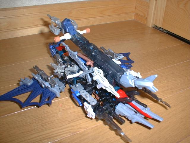 | BLOXゾイドの性能を飛躍的に向上させた人工コア、TB8。 TB8ブロックスゾイドとして始めて空中専用機がラグナロック・ワイバーンだ。 TB8を装備しているこの機体は巨体ながら機動性が高く、バスターイーグル以上の性能を発揮する。 運動性も高いので空中戦、対地攻撃、奇襲、強襲など、飛行専用ゾイドにしては運用の幅が広い。 空中専用機としては汎用性が非常に高い。 足があるべき場所にザンブレードが装備されているので着陸はうまくないが、格闘戦にも対応できる。 またこの機体は『TB8を武装化する』と言ったコンセプトも入っているため、この機体のTB8は砲身の役割も果たしている。 TB8と直結したビームランチャー『ラグナロック・キャノン』はあらゆるゾイドを一撃のもとに破壊する。 ちなみに『ラグナロック・キャノン』の口径が小さいのはビーム集束率を上げて威力の向上をはかったためである。 最近TB8の形を見て「これだ!」と思って作りました。 バスターイーグルみたいなのを手持ちの部品で作りたいとも思いましたね。 感想など頂けると嬉しいです。 |