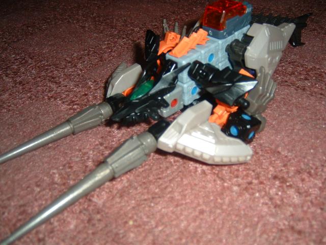 | ゲイル隊の、水中戦用ゲイラスタイプ。 もちろん格闘攻撃も得意だが、 射撃能力が最も優れている。 常備している電磁槍から放たれる電磁ビームは、水中で、圧倒的な強さを誇る。 また、この機体は、電磁反射コーティングがされているので、この機体自身は、 電磁攻撃を受けない。また、この機体は偵察機にも使われている。 この写真では見えにくいですが、尾は、スティルアーマーの、尻尾です。 |