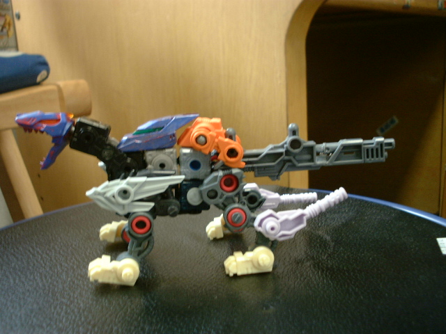 | RBZー007クロスリザード(トカゲ型) 必殺技【クロスバースト】 このゾイドは共和国の新たな戦力として開発された通称「クロスシリーズ」と呼ばれる6機のゾイドの内の1機である。敏捷な動きと射撃に秀でており、尻尾のアーリーライフルでの中距離戦を得意としている。そして6機全機の共通点、「クロスチェンジマイズシステム」が最大の特徴である。これは2機のゾイドによる簡易合体システムで片方片方がそれぞれフロントモード、リアモードになり合体する。これにより合体時間の短縮と戦闘手段を変えない高いパワーアップができるようになった。フロントモードでの合体時はマルチプルガンも武装に増えさらに火力が高くなっている。合体する相手により局地戦に対応するのも特徴である。数機が生産されたがパイロットの使い方が良くなくたいした戦果が上げられないので生産は中止となった。1機のみ6人で構成されたゲリラ戦部隊「ゼクスズ」のリーダー、ヘーリオル・ヒーストンは扱いこなし、隊員もそれぞれの機体を愛機とし実際に戦果をあげたらしい。 |