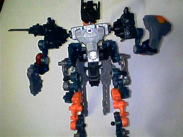 | 一機で多数の敵に圧倒的大差で勝つこと。戦局を変えられること。 この期待の開発コンセプトである。 本体には「生き残るためにシステム」以外にはスピードが速いことをのぞいて目立った特徴はない。 だが、「生き残るためにシステム」は、この機体の最大の特徴の1つである。 このシステムは、敵の攻撃を感知して攻撃が当たると思われるところのみに小さくエネルギーシールドをはるシステムである。 コンピューターによって完全に制御されたこのシステムの裏をかいて本体に攻撃を当てるのは、不可能といっても過言ではない。 しかし、小さくシールドを張ることを前提としたジェネレーターを装備しているため、一定以上の大口径兵器を防御するのは少し厳しいのではないのかと開発者は語る。 また、剣などの手持ち武器は防御できず、本体の装甲は、非常に貧弱であるため、打撃兵器や、斬撃兵器などには多少弱い。 また、大型のバックパックは、「すべての者に恐怖と絶望を」と呼ばれ、この機体の主兵装である。四つのユニットに分離し多方向から同時に砲撃を仕掛けることによって、相手に確実に攻撃を当てる。 「生き残るために」と「すべての者に恐怖と絶望を」を使用することによって圧倒的な強さを発揮するが所詮はMクラス。Lクラスのゾイドにはパワーと大きさで劣り、さらにスピードにも優れた機体が数多く存在するので、圧倒的な大差を付けるどころか、勝つことさえできないと批判する評論家も数多くいる。 武装 「すべての者に恐怖と絶望を」(ビームランチャー2門 ビームライフル2門 AZハンドガン4門) レーザーライフル3門(手持ち) ザンブレード1本(手持ち) テイルナイフ2本(手持ち) 兵装 「生き残るために」 手持ちシールド1枚?(単位が解りません) 胸部チャフ噴射口 背部イオンブースター 基本スペック(同クラスHmBLOX比) 出力B+ 装甲D+(「生き残るために」使用時S) 機動力A(「すべての(以下省略)」分離時S) 火力S 武力B+ 初めて投稿します。 画像が汚いのは携帯で撮ったからです。(デジカメがない(ToT)) 上半身がデカいっすね。 つーか脚が貧弱・・・・・パーツがないんです。(泣) 一応強いんだか弱いんだか解らない設定にしようと思ったんですが何か強くなってしまいました。 すいません。 コメント待ってマース。 |