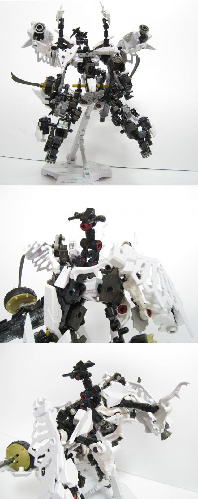 コメント有り難うございます! >むらさめっちさん GIFどうもです!載せさせて貰いました。 自分でもそのうち出来るようになりたいっす…。 実は「V」をバラしたそのパーツで作った物なのですw構成パーツが殆ど一緒なのはそのせいです。 せっかく組んだ素体をすぐバラすのは勿体ないなぁと思い、制作に当たりました。 いずれ、アリスでも変形を試させて貰うかもですよw >白狐さん >また騙された 最高の褒め言葉です。 軍事系の知識は無いくせにこういうモノを作ってしまいますw ビークルモードのモチーフはかっこいいレッケージ君とデバステーターさんです。 | |||||
